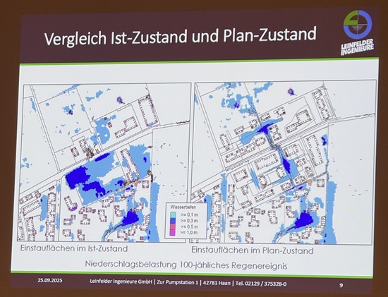 "Die Beschlussvorlage wurde noch dahin gehend erweitert, dass für die Bestandssituation der Ohrenbuschsiedlung die Starkregengefahr auszuschließen und zu minimieren sei."